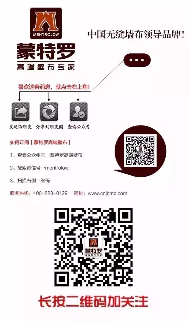强有力的后盾是品牌发展的一大保障,在蒙特罗的不断发展与壮大中,其品牌价值也将得到不断的提升。蒙特罗壁布的愿景是——成为“消费者的首选墙布品牌”,并藉此为理念致力于成为全球顶级的墙布供应商之一,给更多的消费者带来健康、时尚、奢华的墙饰产品。